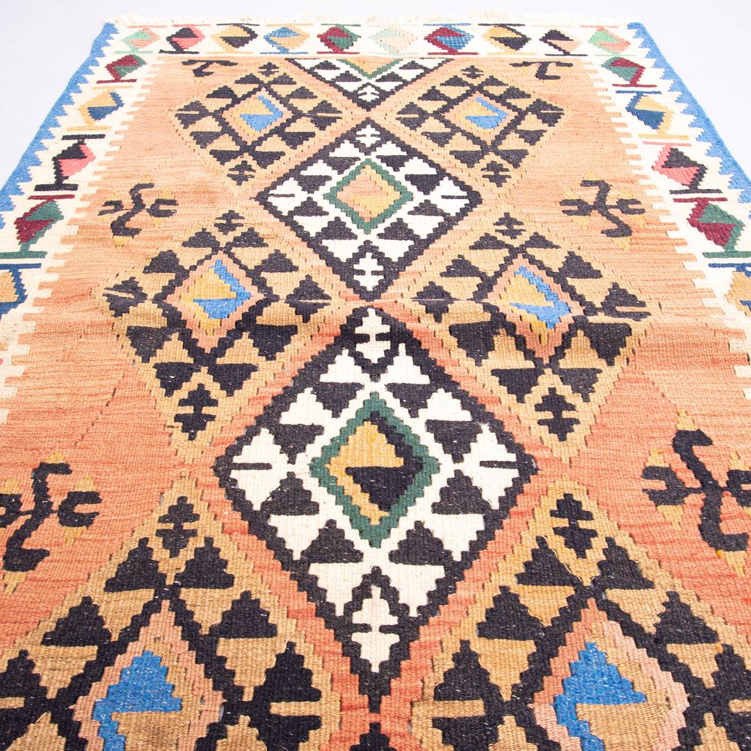 Oriental Kilim - Handmade Wool on Wool - 87 x 168 cm (2' 11'' x 5' 7'') - Orange and Multicolor