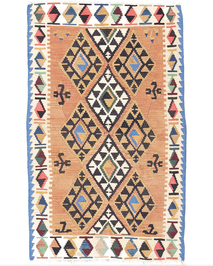 Expertly woven from high-quality wool threads, our Kayseri kilims showcase the craftsmanship that comes from using natural dyes. Each kilim is meticulously crafted on traditional handlooms, ensuring that every piece tells its unique story.