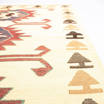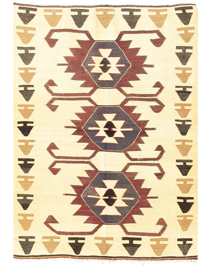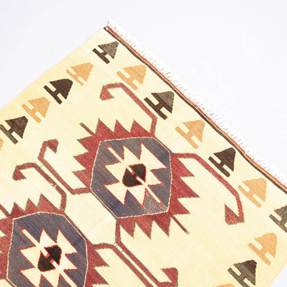 Oriental Kilim Anatolian Handmade Wool On Wool 93 x 130 cm (3' 1'' x 4' 4'') in Sand C007 ER01 and Multicolor