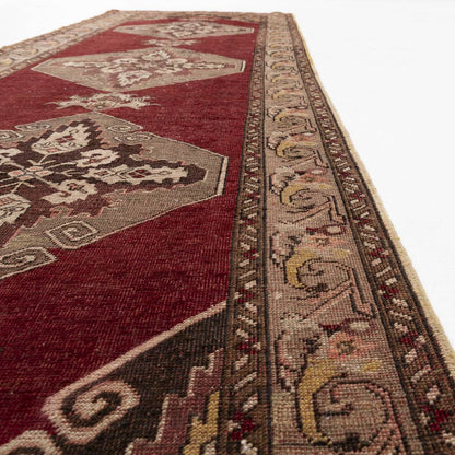 Oriental Turkish Runner Rug Handmade Wool On Wool Anatolian 107 X 327 Cm - 3' 7'' X 10' 9'' Burgundy C021