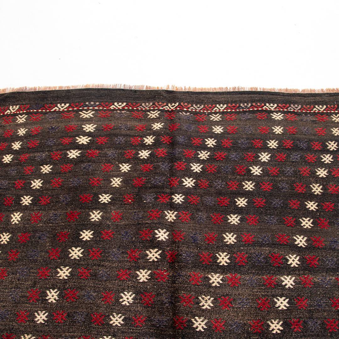 Crafted from high-quality wool, cotton, or silk yarns, this kilim showcases vibrant colors and motifs inspired by nature. Perfect for both indoor and outdoor spaces, its versatility enhances a variety of styles, from bohemian to contemporary. The durability of this kilim not only adds a touch of elegance but also ensures a sustainable choice for your home.
