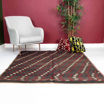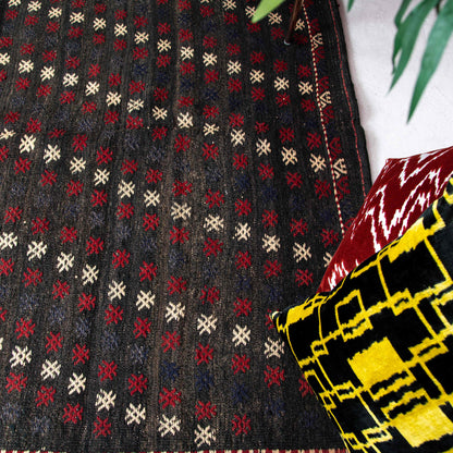 Oriental Kilim Cicim Handmade Wool On Wool 152 X 197 Cm - 5' X 6' 6'' Black C002 ER12