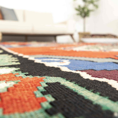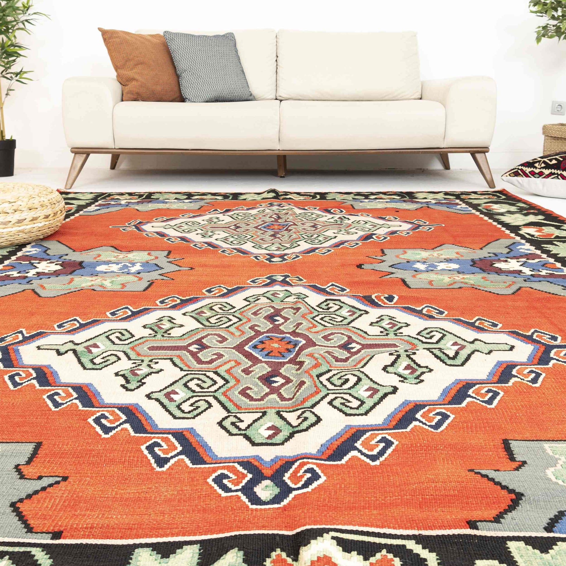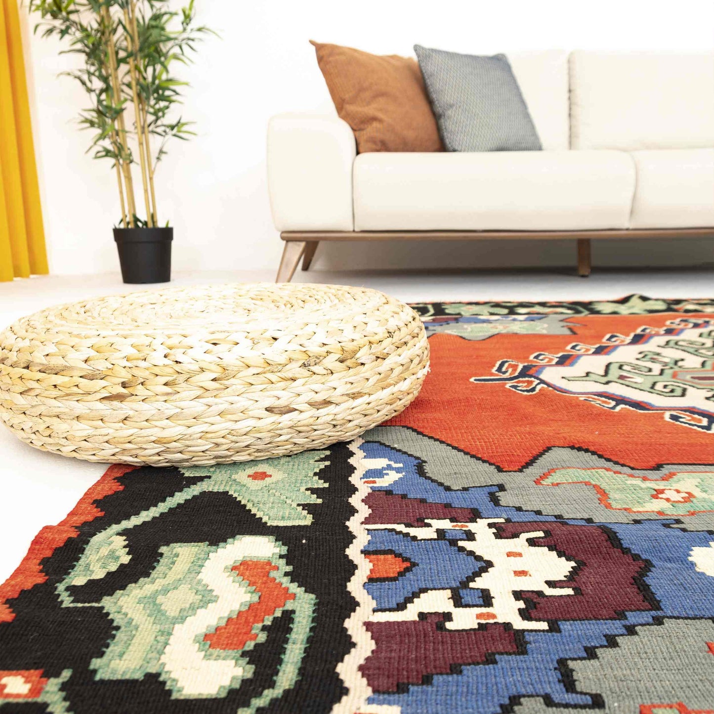 Seamlessly blending with various interior styles, from eclectic and bohemian to contemporary and rustic, this kilim serves as a statement piece or can be layered for added depth. Its lightweight nature allows for easy movement, making it simple to refresh your decor.