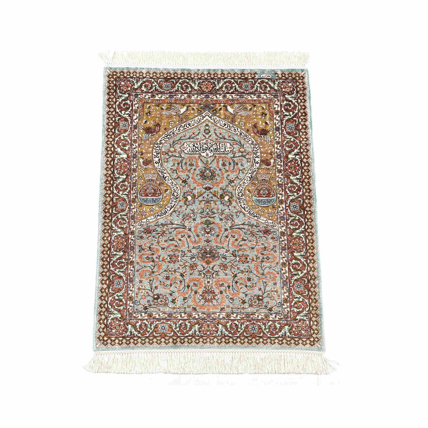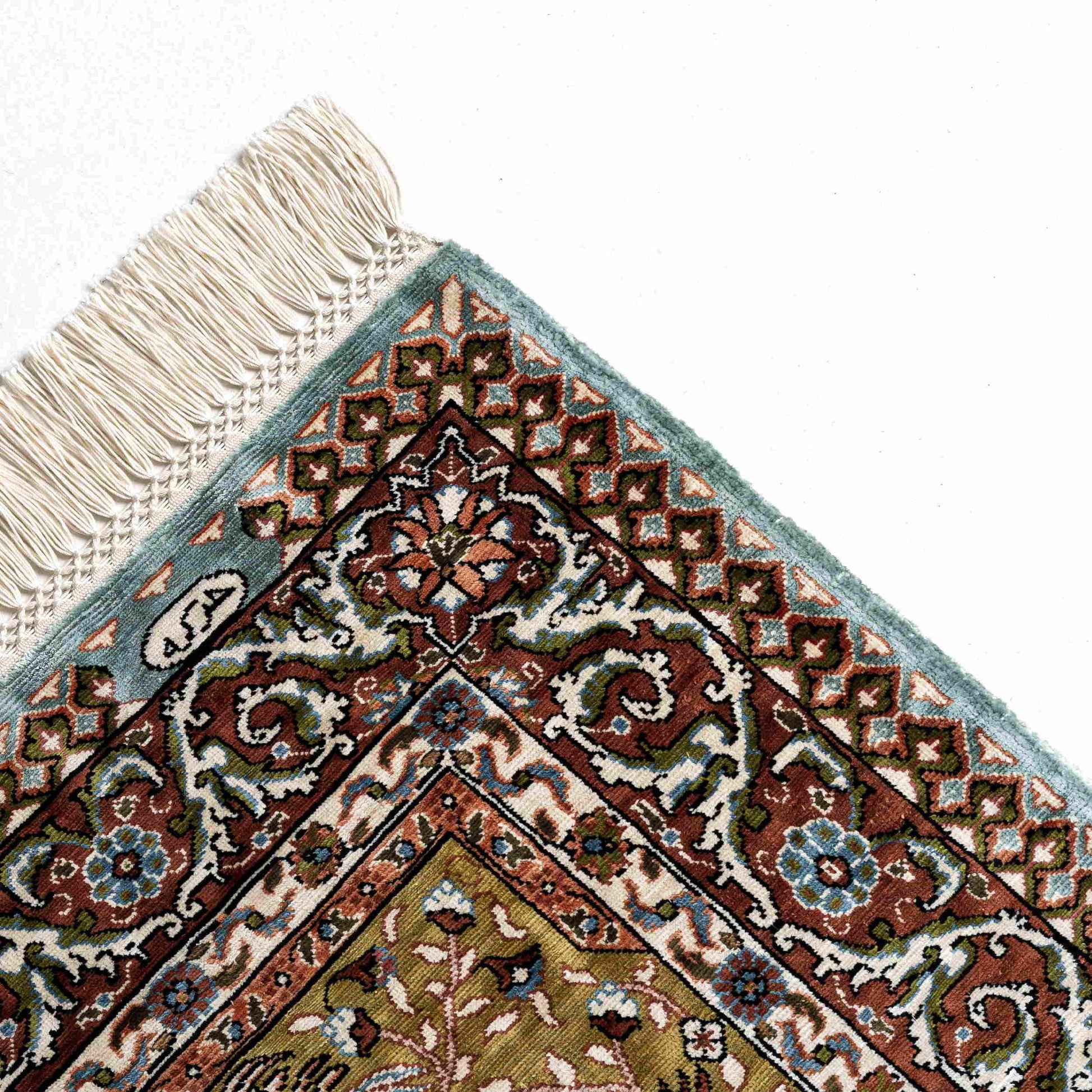 Oriental Rug Hereke Handmade Pure Silk - 72 X 98 Cm - 2' 5'' X 3' 3'' Green C015 ER01