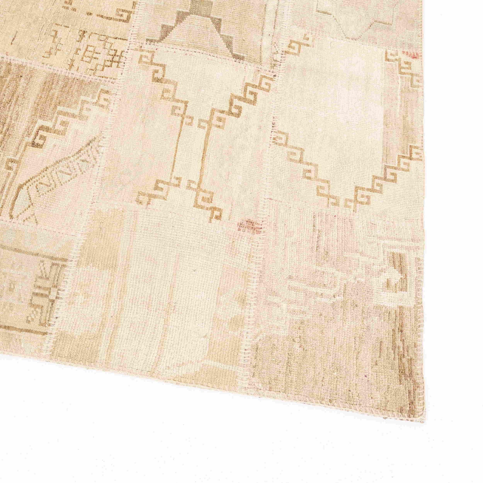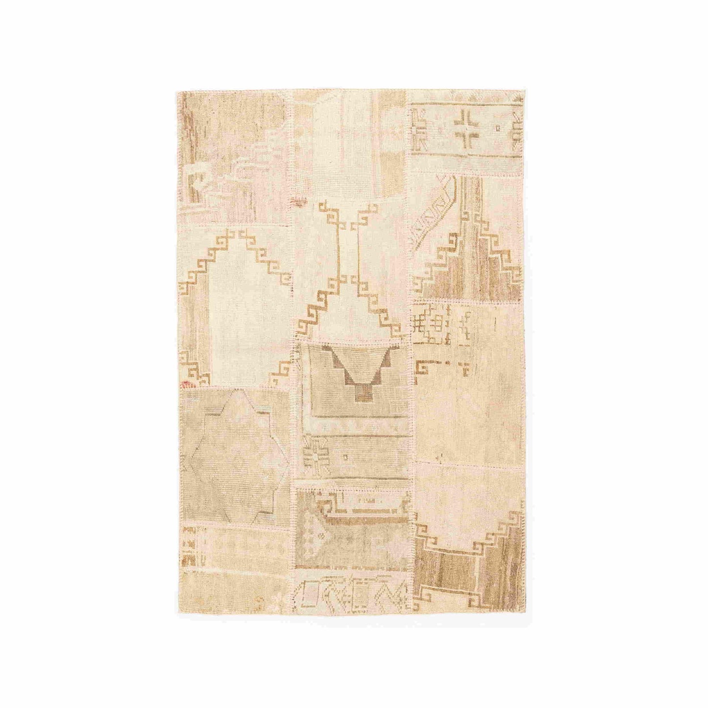 Oriental Rug Patchwork Hand Knotted Wool On Cotton 116 x 176 Cm - 3' 10'' x 5' 10'' Sand C007 ER01