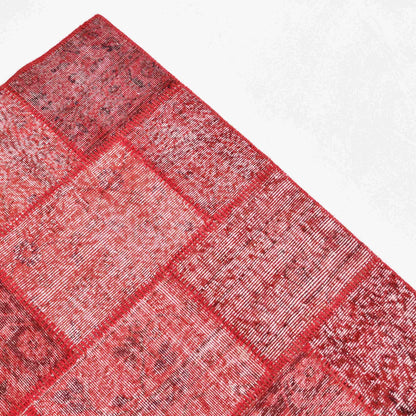 Oriental Rug Patchwork Hand Knotted Wool On Cotton 120 x 180 Cm - 4' x 5' 11'' Red C014 ER01