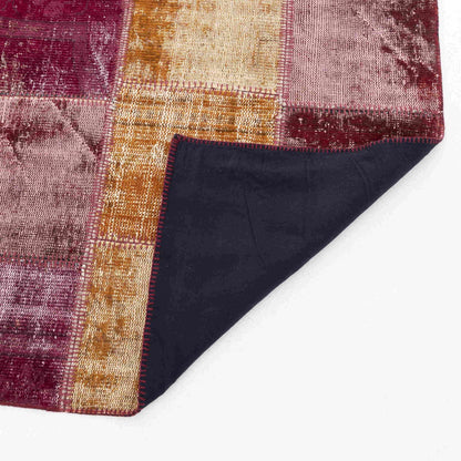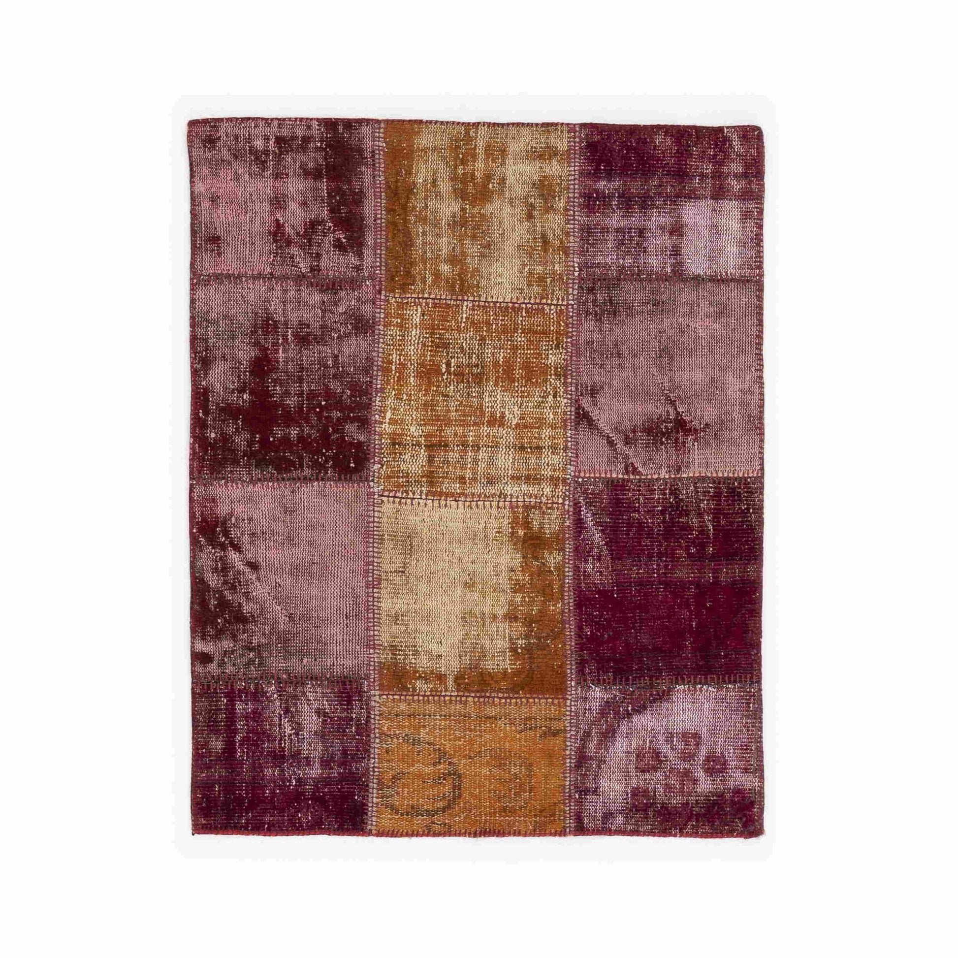 Oriental Rug Patchwork Hand Knotted Wool On Wool 103 x 129 Cm - 3' 5'' x 4' 3'' Red C014 ER01