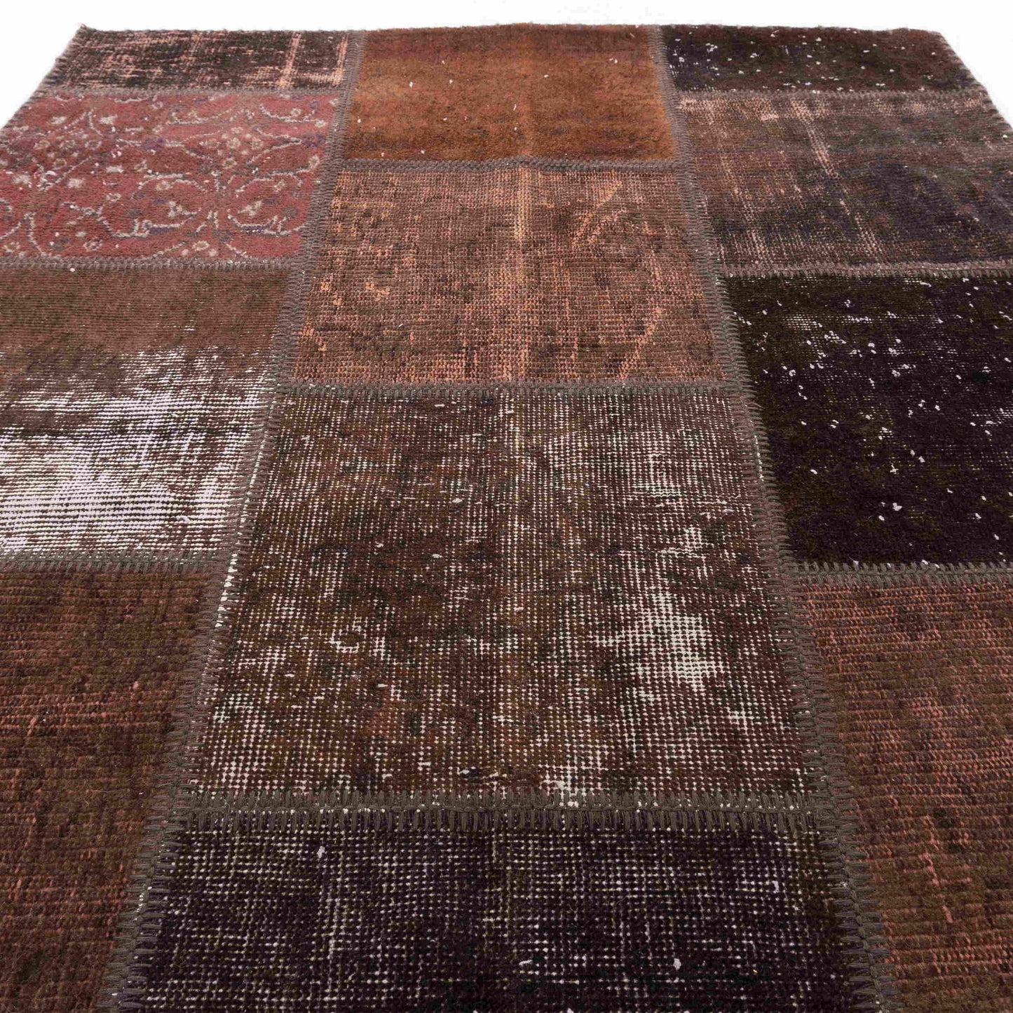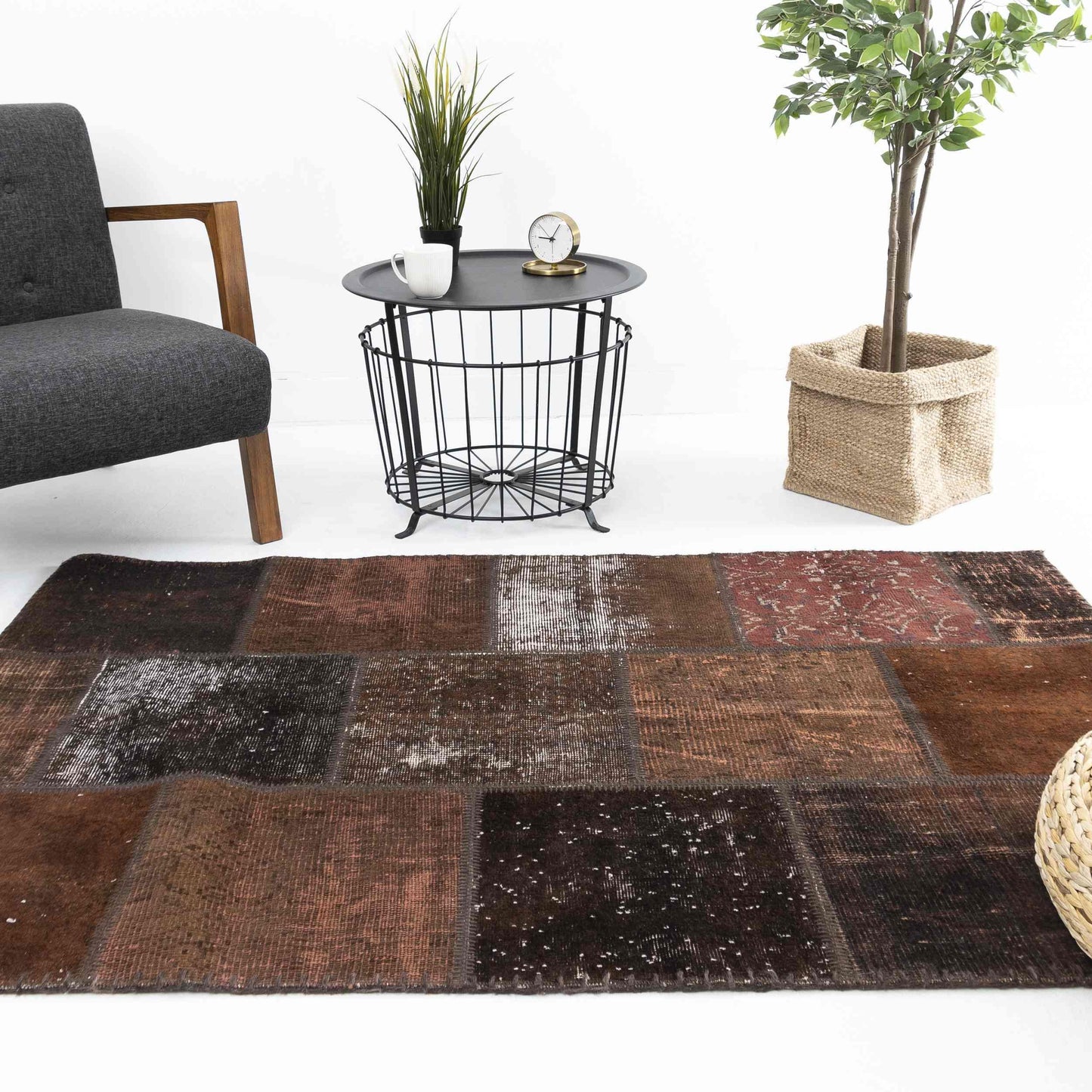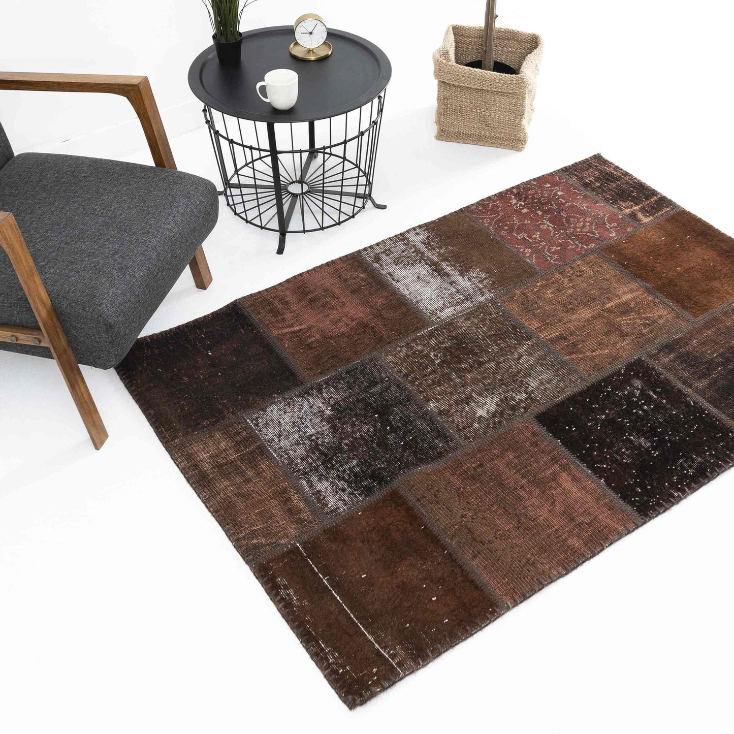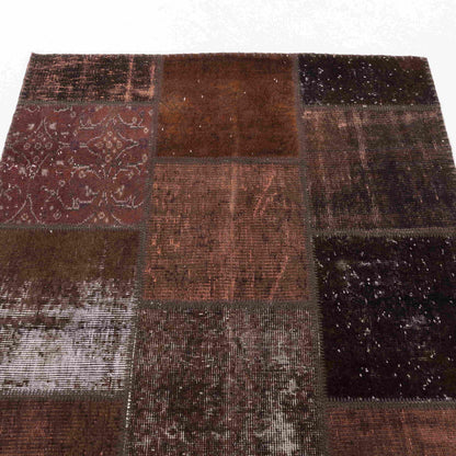 Oriental Rug Patchwork Hand Knotted Wool On Wool 119 x 179 Cm - 3' 11'' x 5' 11'' Brown C005 ER01