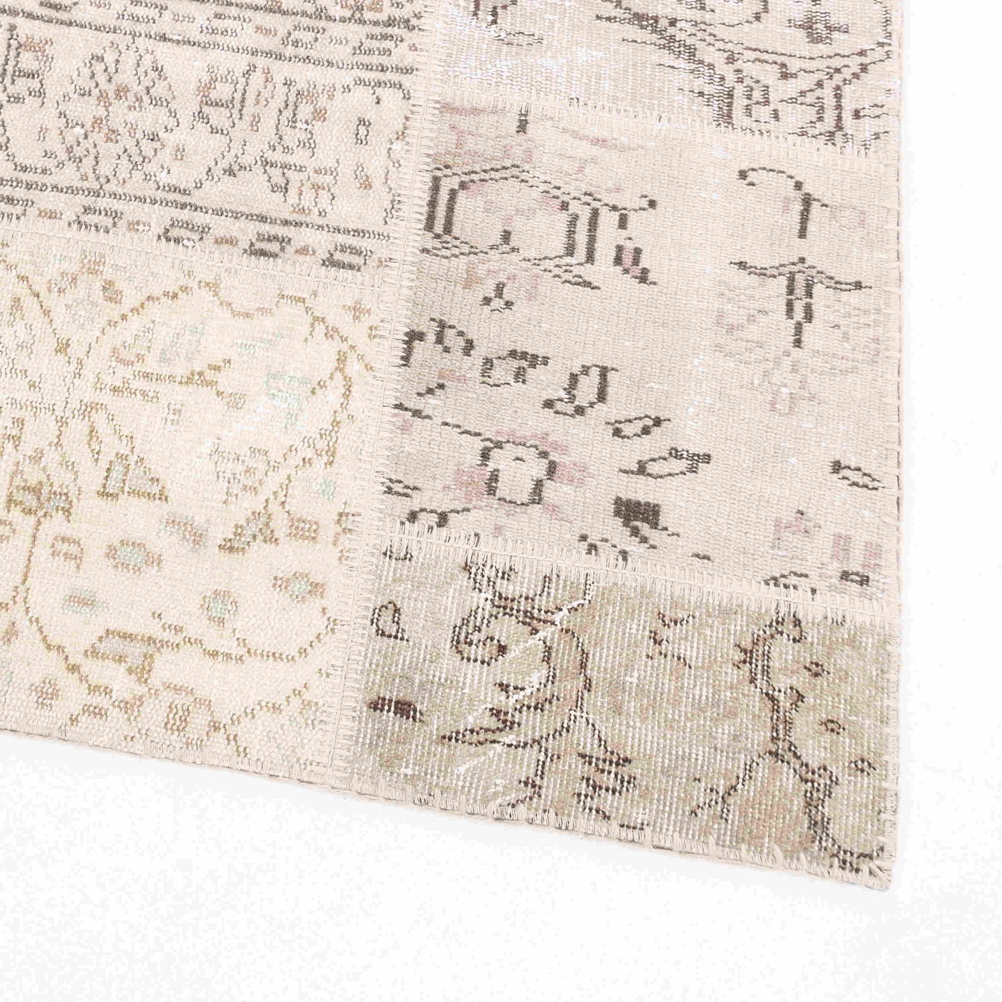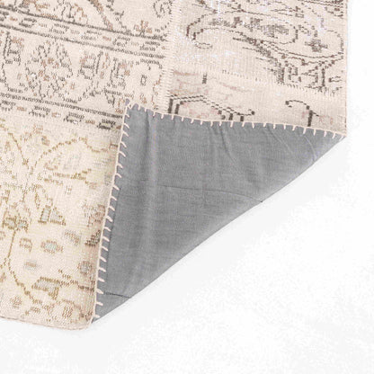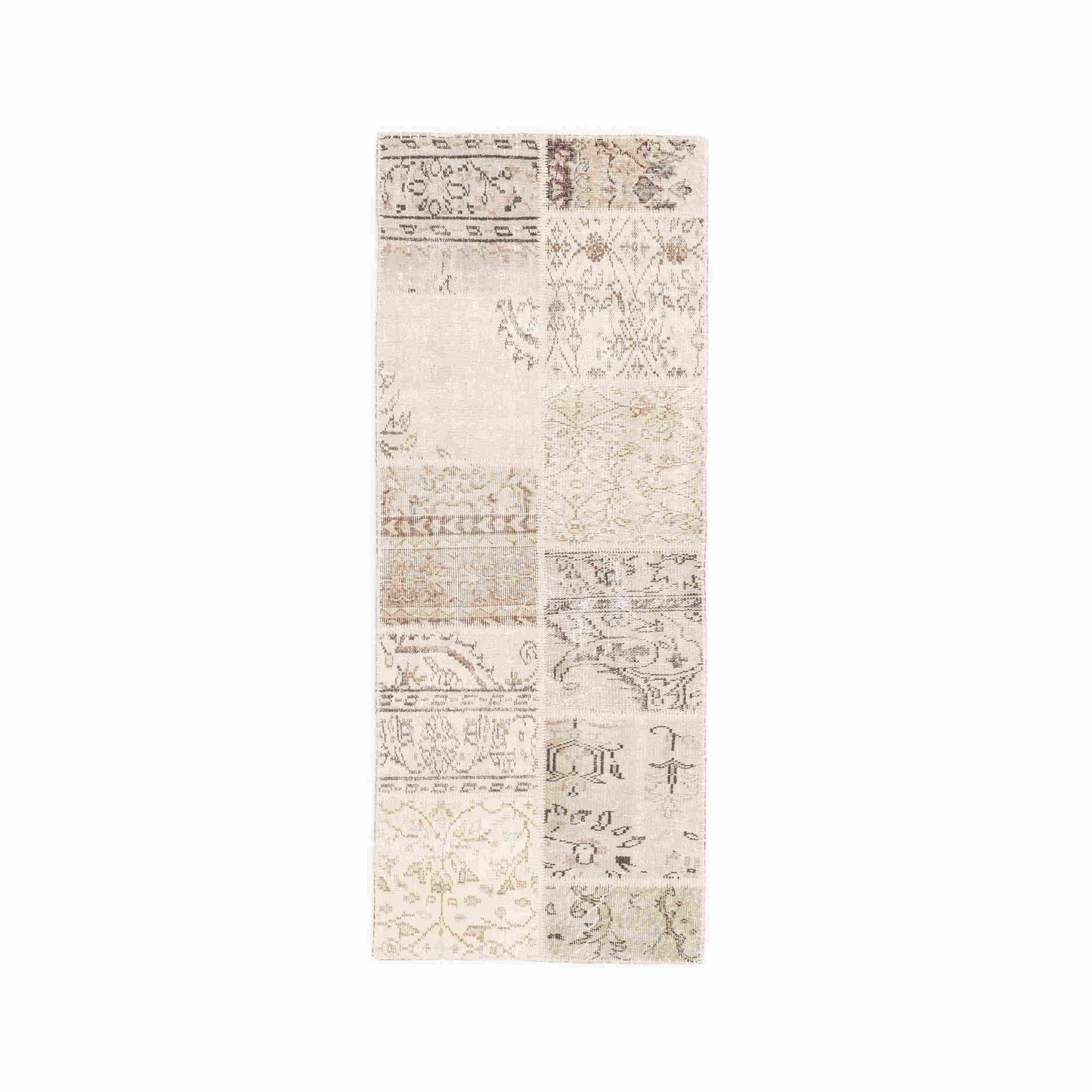 Oriental Turkish Runner Rug Handmade Wool On Wool Patchwork 80 x 198 Cm - 2' 8'' x 6' 6'' Sand C007