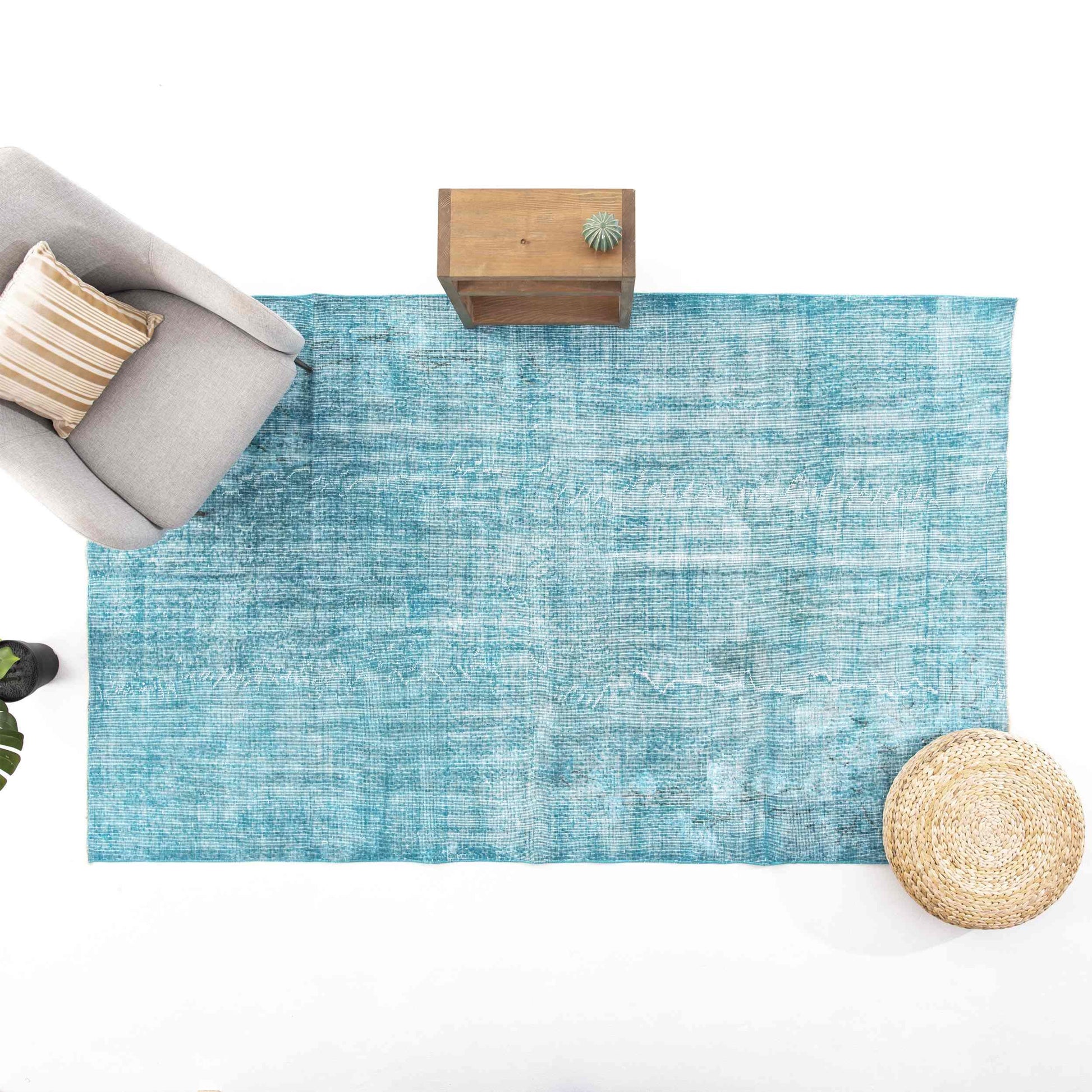 Introducing our Oriental Rug: a stunning Vintage Hand Knotted Wool piece crafted on cotton, measuring 174 x 284 cm (5' 9'' x 9' 4'') in a beautiful turquoise color. This handmade treasure is woven by talented nomadic weavers in Turkey, showcasing designs that are both highly decorative and unique. Inspired by collections of rare antique tribal rugs from the heart of Anatolia, each rug features a blend of soft natural materials with intricate geometric and floral designs in vibrant colors. Every design is meticulously woven with hand-spun wool, dyed using natural vegetable dyes, making it a true masterpiece for any space!