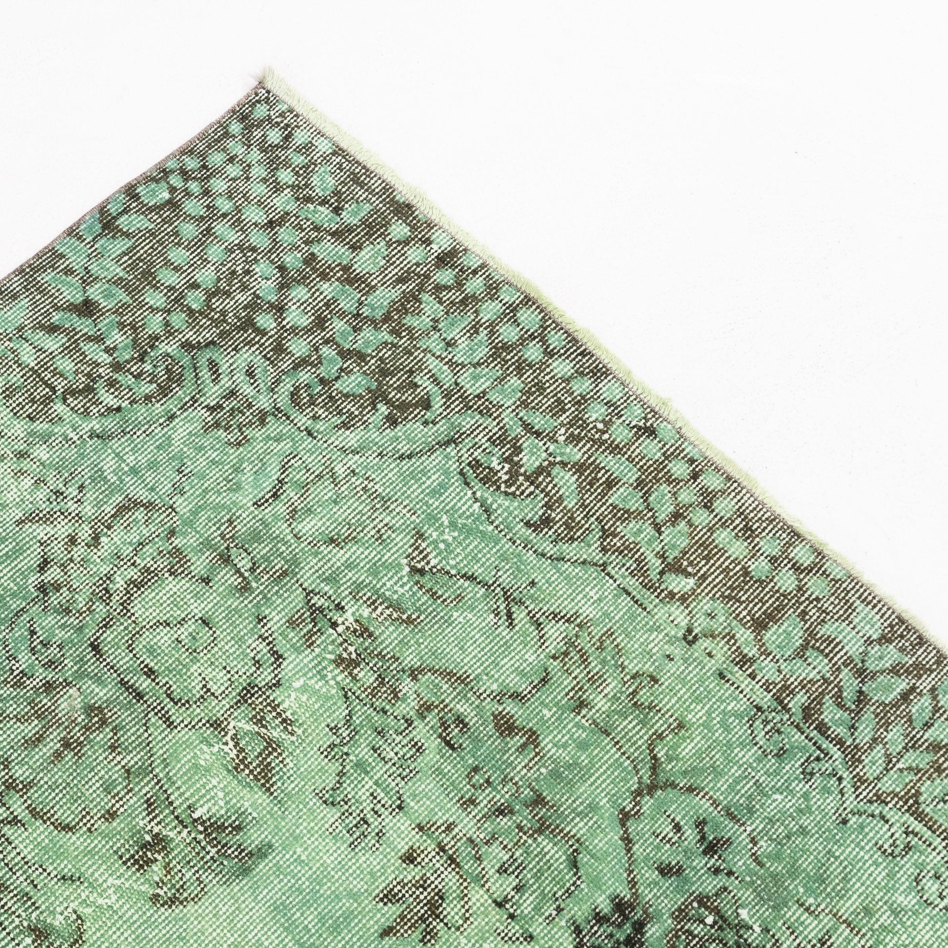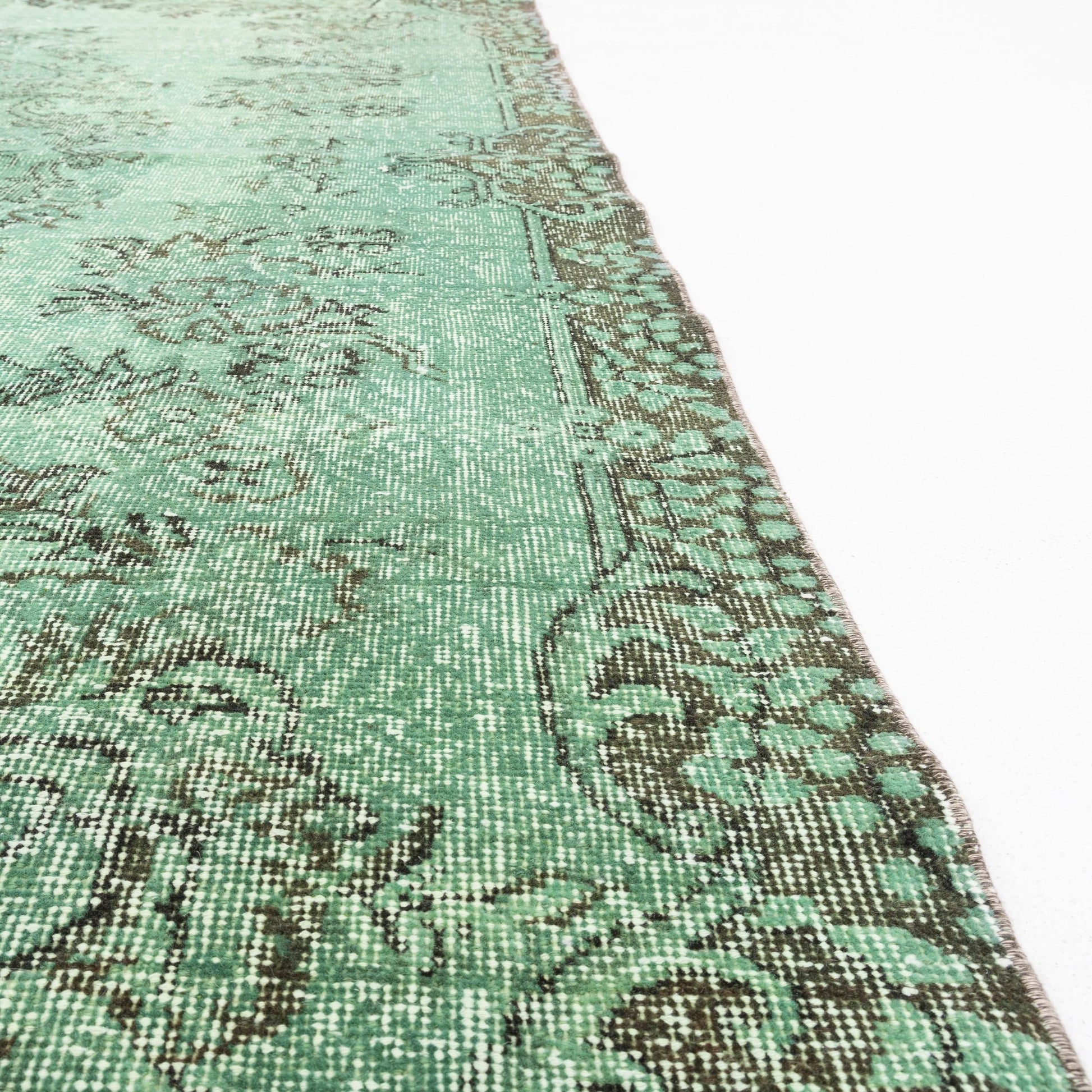Oriental Rug Vintage Hand Knotted Wool On Cotton 168 x 279 Cm - 5' 7'' x 9' 2'' Green C001 ER12