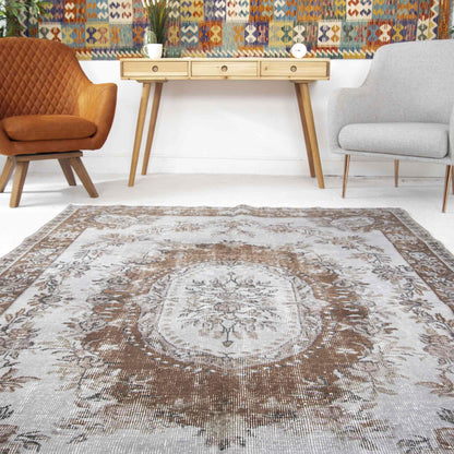 Oriental Rug Vintage Hand Knotted Wool On Cotton 169 x 252 Cm - 5' 7'' x 8' 4'' Brown C005 ER12