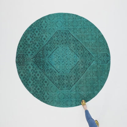 Oriental Round Rug Vintage Hand Knotted Wool On Wool 200 X 200 Cm - 6' 7'' X 6' 7'' Turquosie C019 ER12