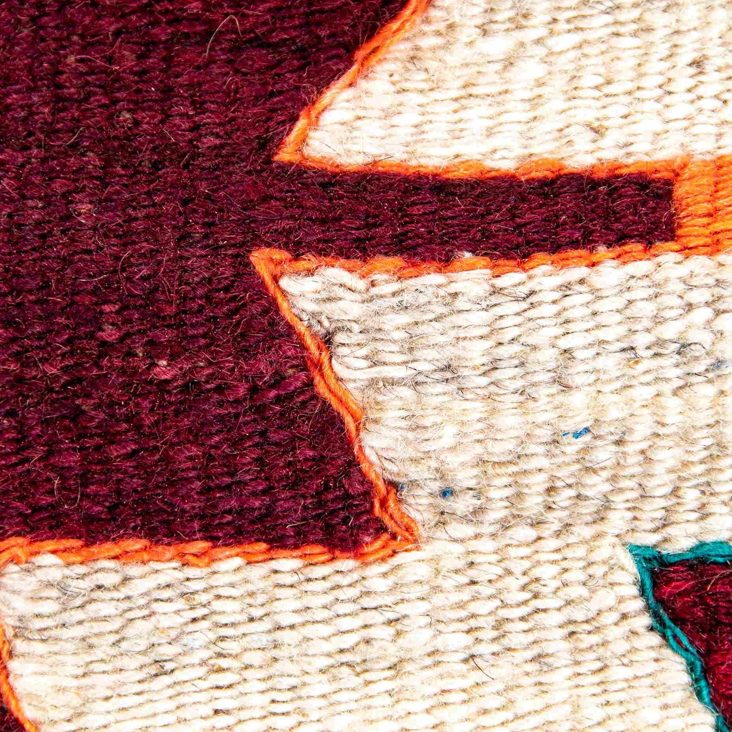 Discover the perfect blend of natural wool and stone & multicolor tones with this 3' x 4' handmade kilim, adorned with intricate geometric ethnic patterns. Whether you're looking to elevate a boho, eclectic, or coastal space, this versatile kilim is a stylish addition to any interior.