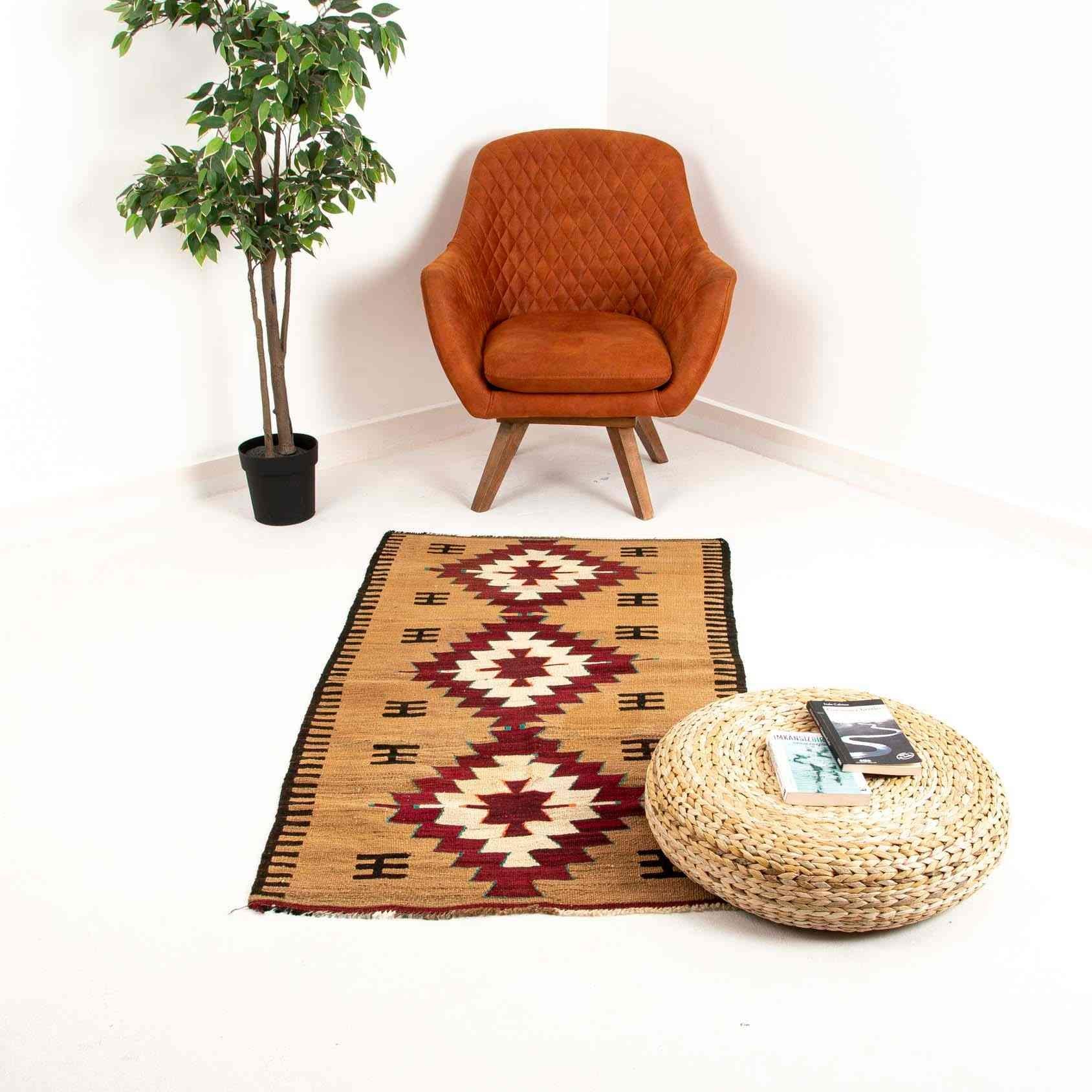 Handmade Anatolian Wool Kilim - 89 x 120 cm - Geometric Ethnic Patterns