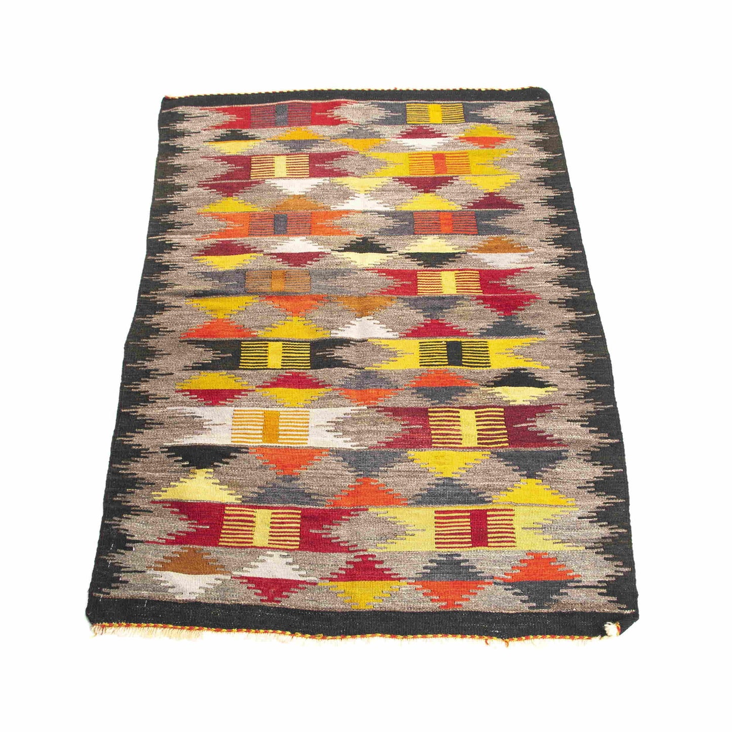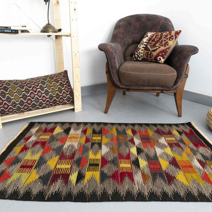 Experience the beauty and tradition of Anatolian Kilims with our unique handmade wool on wool kilim. Measuring 90 x 134 cm (3' x 4' 5''), this kilim is a perfect addition to any home decor.
