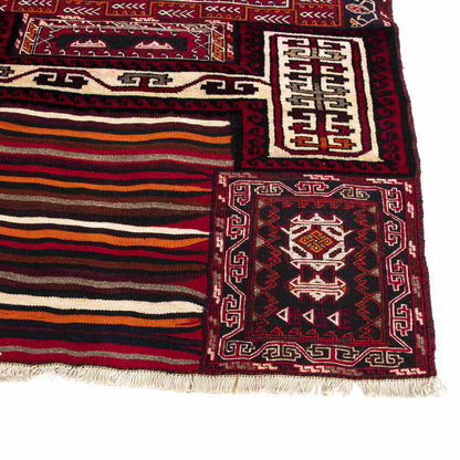 Discover the vibrant charm of our Bahtiyari kilims, meticulously handwoven by skilled artisans in the Zagros Mountains of Iran. Made from high-quality wool, these flatweave rugs showcase intricate geometric patterns in rich burgundy and stunning multicolor designs, adding a striking element to your home decor.