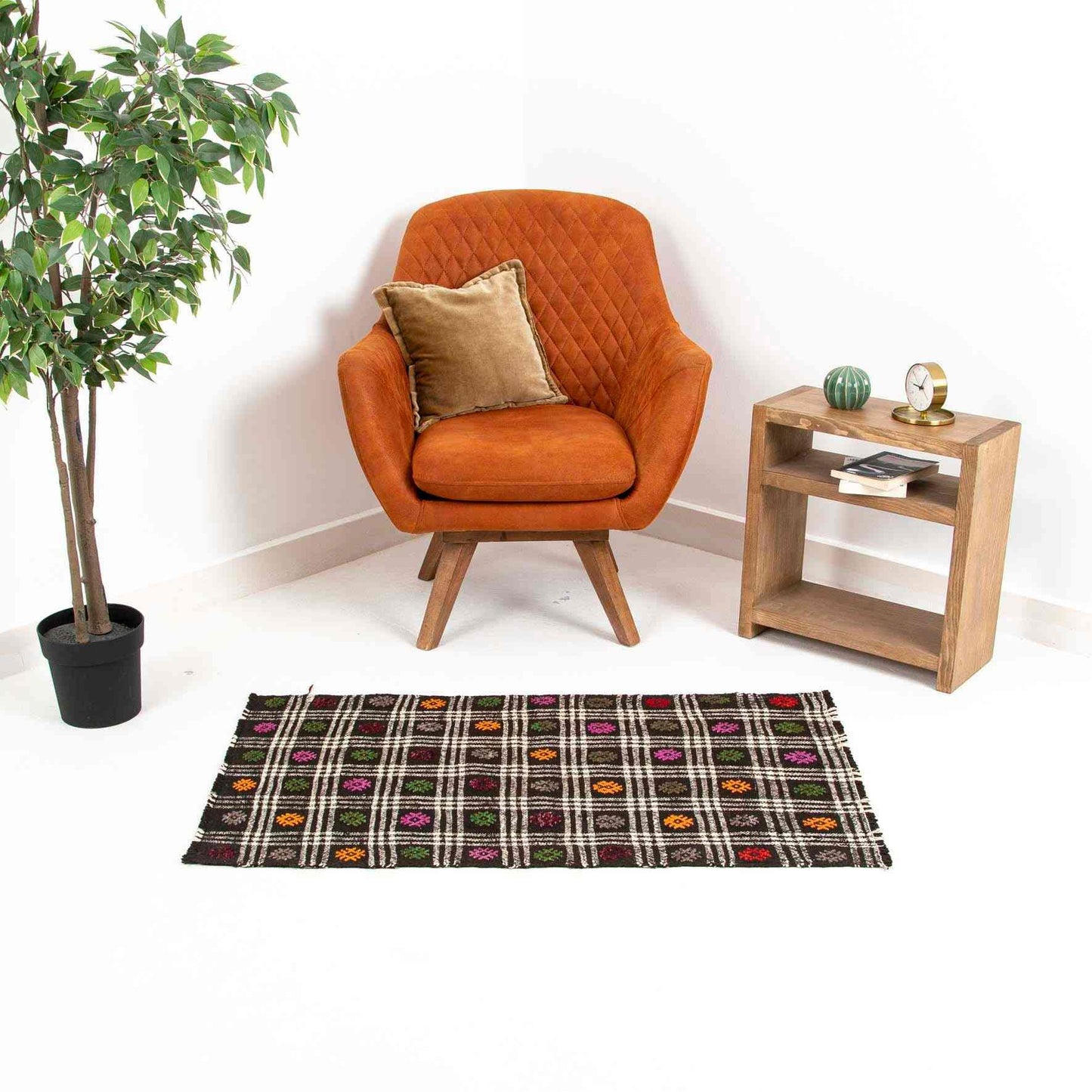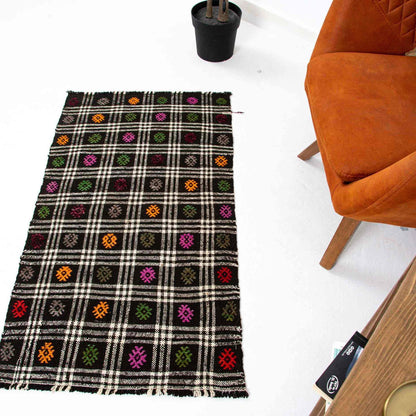 Oriental Kilim Cicim Handmade Wool On Wool 65 X 116 Cm - 2' 2'' X 3' 10'' Black C002 ER01