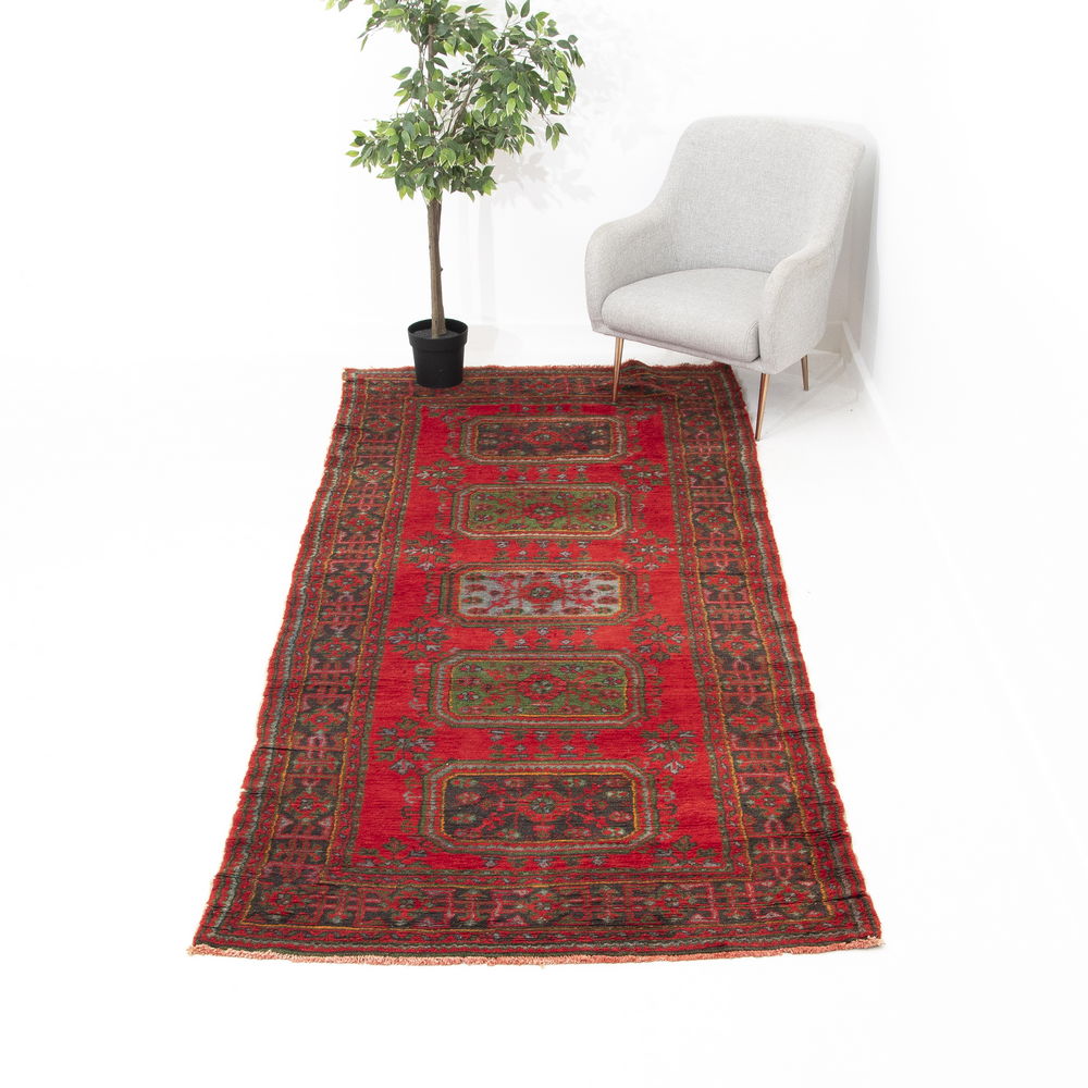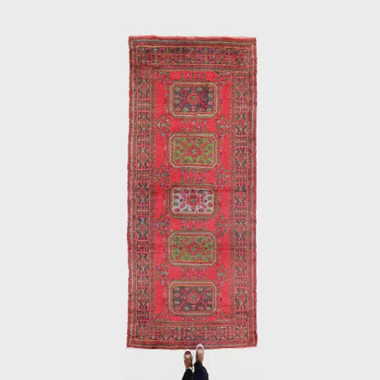 Oriental Rug Anatolian Hand Knotted Wool On Cotton 138 X 338 Cm - 4' 7'' X 11' 2'' Burgundy C021 ER12