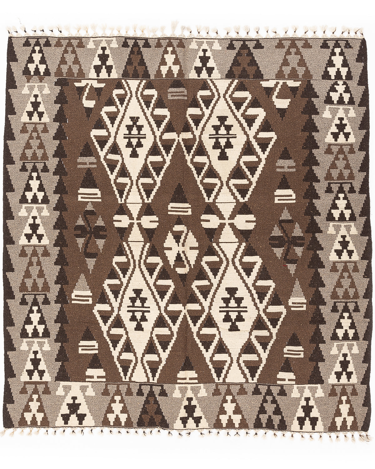 Oriental Kilim Anatolian Handmade Wool On Wool 200 X 215 Cm - 6' 7'' X 7' 1'' Brown C005 ER12