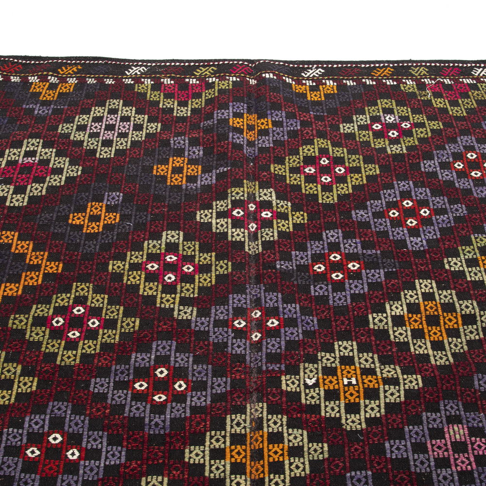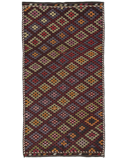 Experience the rich tradition of Turkish textile art with our Oriental Kilim Cicim, meticulously handcrafted from wool on wool in stunning brown and multicolor. Measuring 180 x 328 cm (5' 11'' x 10' 10''), this unique kilim features intricate decorative stitching that highlights its exquisite craftsmanship.