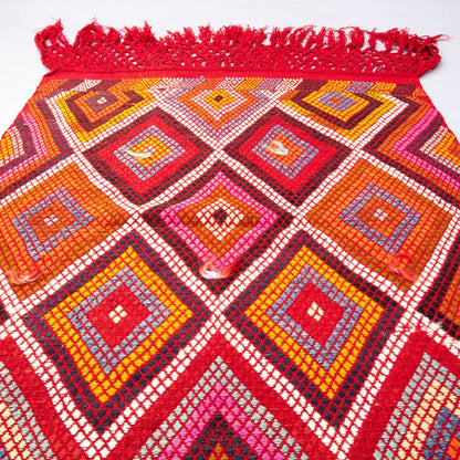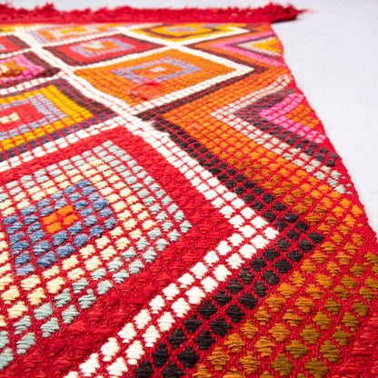 Oriental Kilim Cicim: Handmade Wool on Wool (95 x 136 cm - 3' 2" x 4' 6") - Red and Multicolor