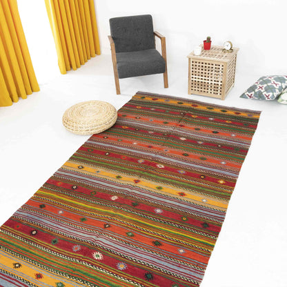 Oriental Kilim Anatolian Handmade Wool On Wool 150 x 284 Cm - 5' x 9' 4'' Multicolor C016 ER12