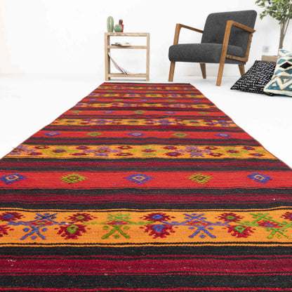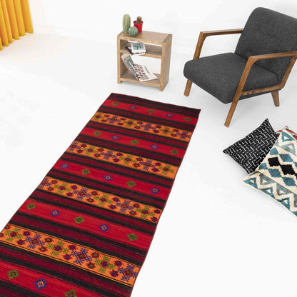 Oriental Runner Kilim Anatolian Handmade Wool On Wool 92 x 390 Cm - 3' 1'' x 12' 10'' Red C014 ER12