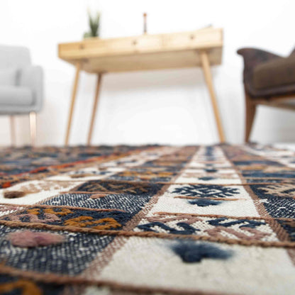 Typically woven from wool, cotton, or silk yarns, each kilim is a masterpiece, showcasing vibrant and saturated colors inspired by nature and daily life. Their rich motifs make them perfect for adding a unique touch to any space.