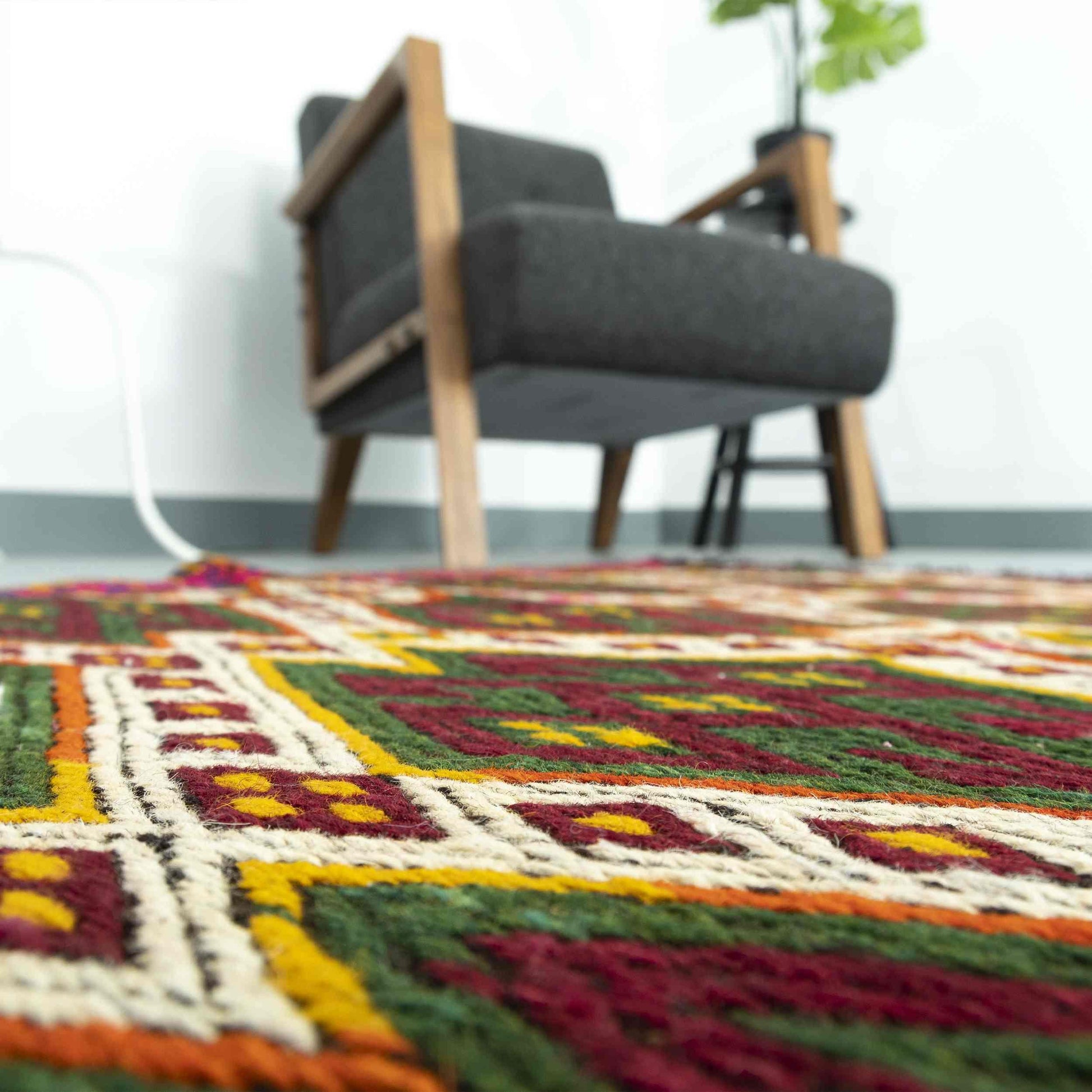 Whether placed in a bohemian living room, a modern dining area, or an eclectic hallway, this cicim kilim enhances your interior with its distinctive flair. Ideal for both indoor and outdoor spaces, it complements various design styles, making it a versatile addition to your home.