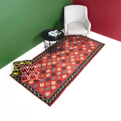 Authentic Gocmen Handmade Wool Kilim (125 x 260 cm | 4' 2" x 8' 7") - Red and Multicolor