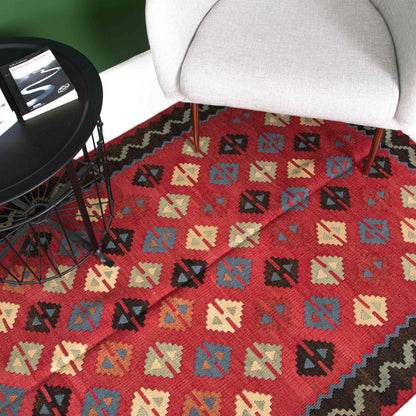 Crafted from natural materials and dyed using traditional methods, this eco-friendly kilim is not only a stunning addition to your home but also a sustainable choice. By investing in this piece, you support ethical craftsmanship while acquiring a valuable heirloom to cherish for generations.