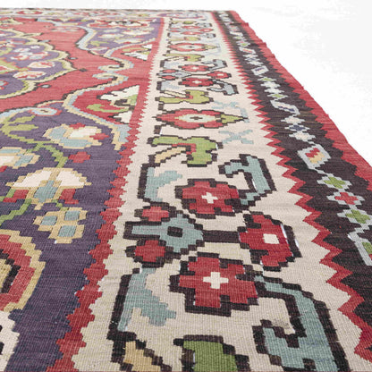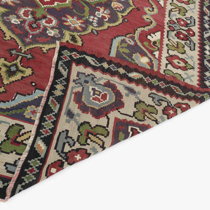 Elevate your space with this stunning handmade Gocmen Kilim. Crafted from 100% natural wool, this wool-on-wool masterpiece showcases vibrant red, green, sand, and multicolor tones combined with floral and nature-inspired patterns, offering a unique and timeless charm. Measuring 240 X 284 cm (7' 11" X 9' 4"), it’s the perfect size for creating a statement in your living room, hallway, or bedroom.