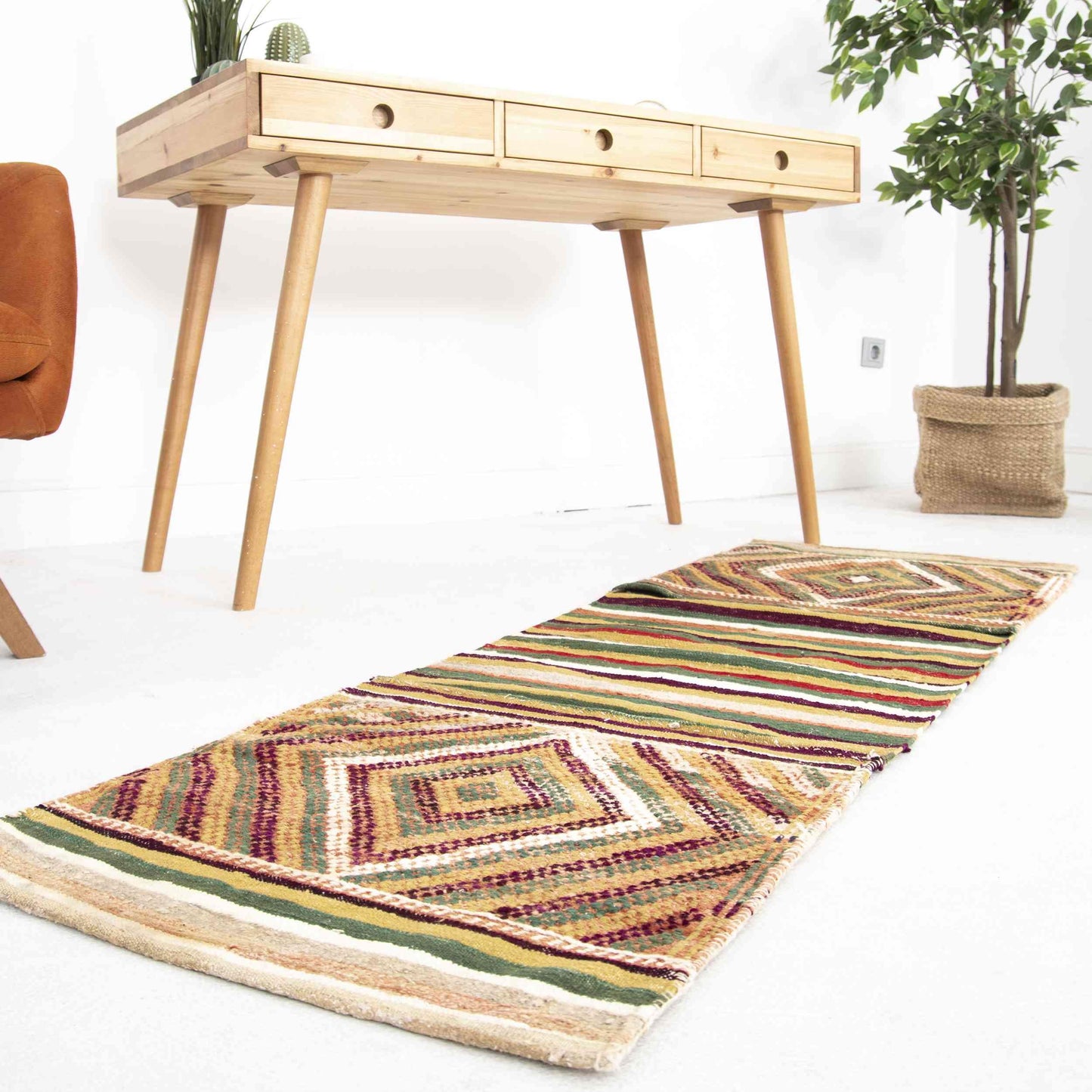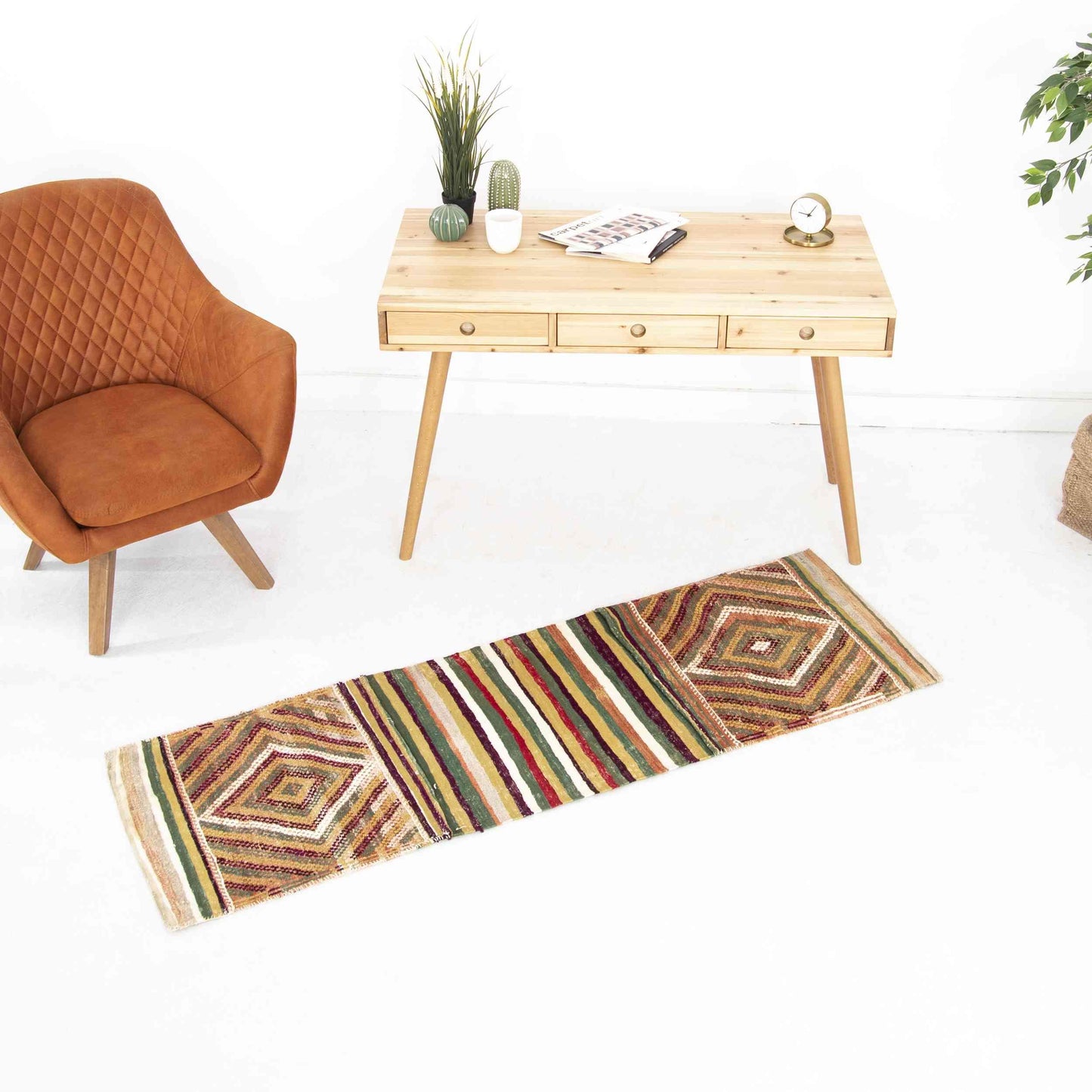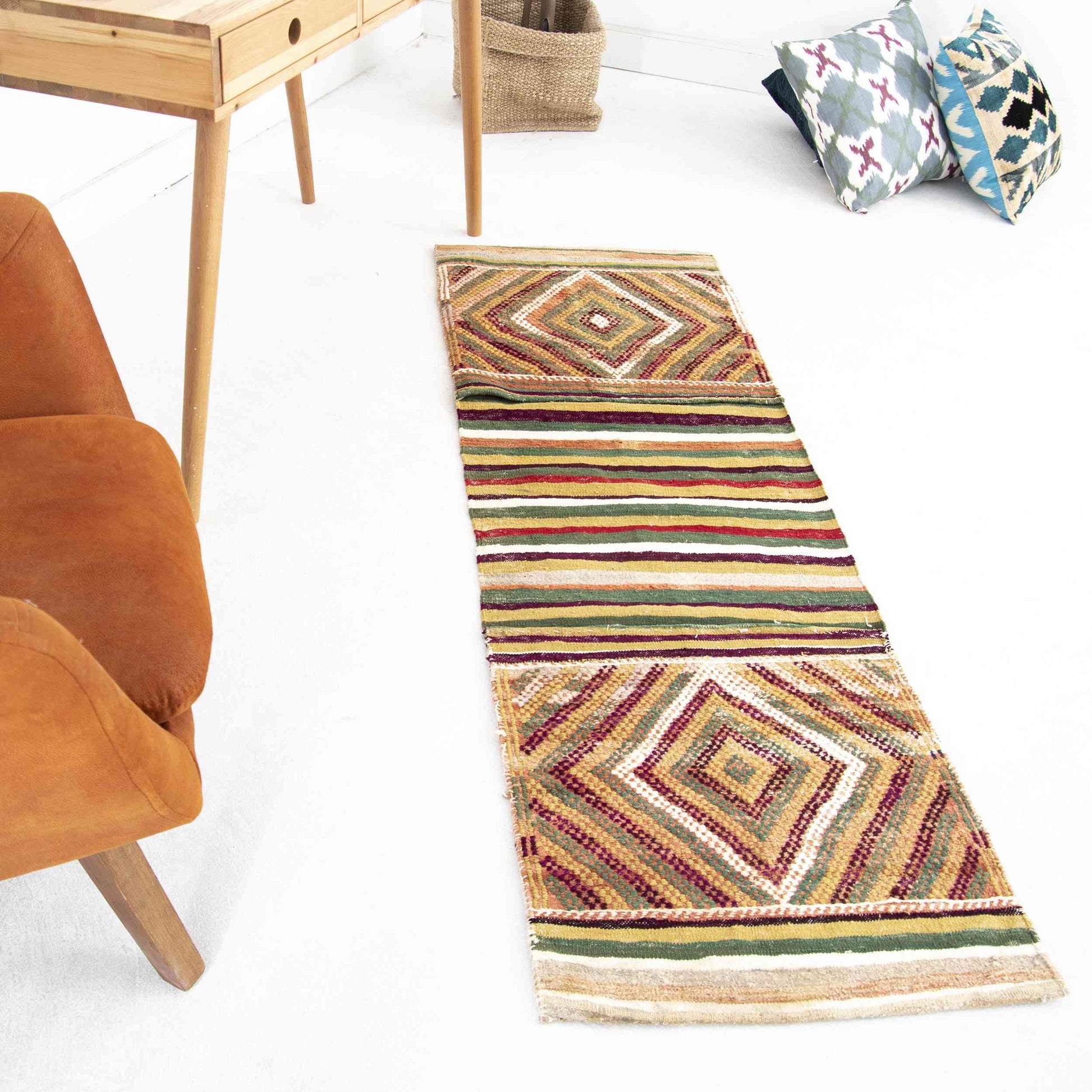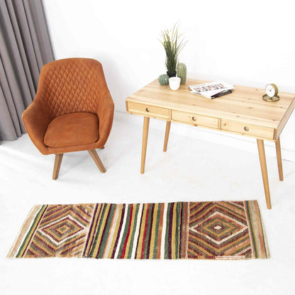 Handmade Wool On Wool Kilim - 57 x 184 cm (1' 11" x 6' 1") - Multicolor