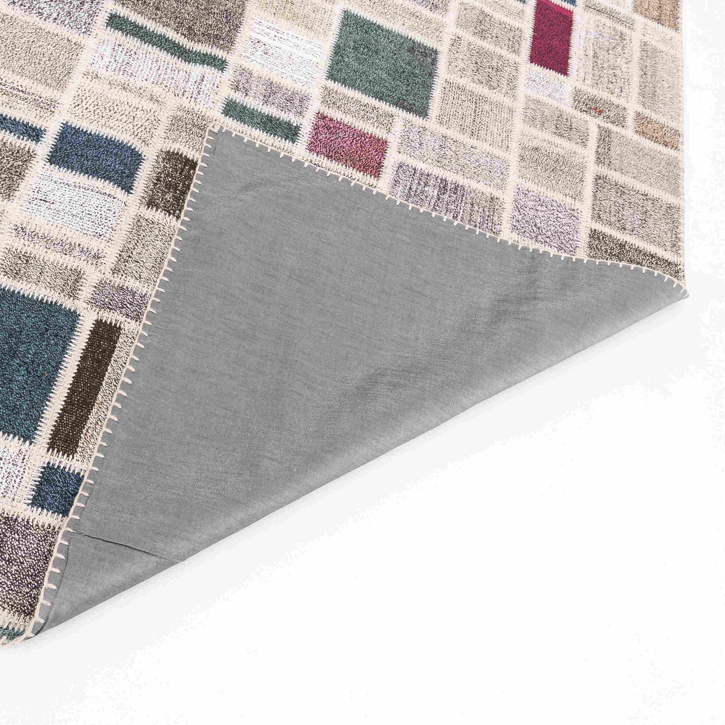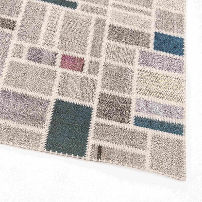 Step into a world of original, handwoven Turkish rugs and embrace the elegance of Oriental rug patchwork. Measuring an impressive 315 x 393 cm (10' 5'' x 12' 11''), this grey, sand, and multicolor masterpiece brings warmth and character to any room.