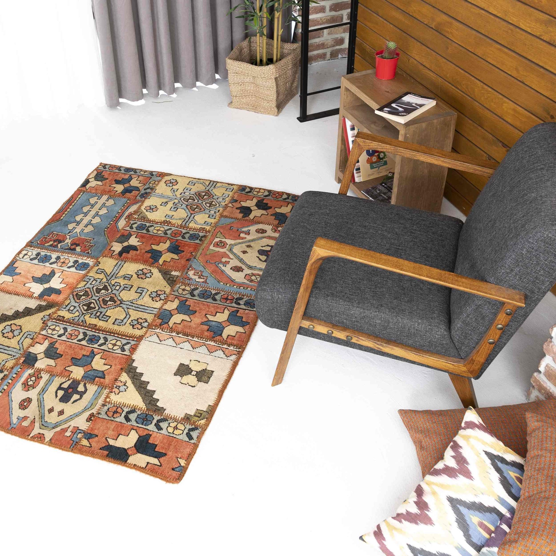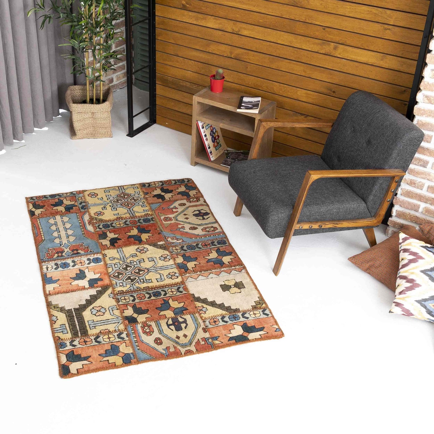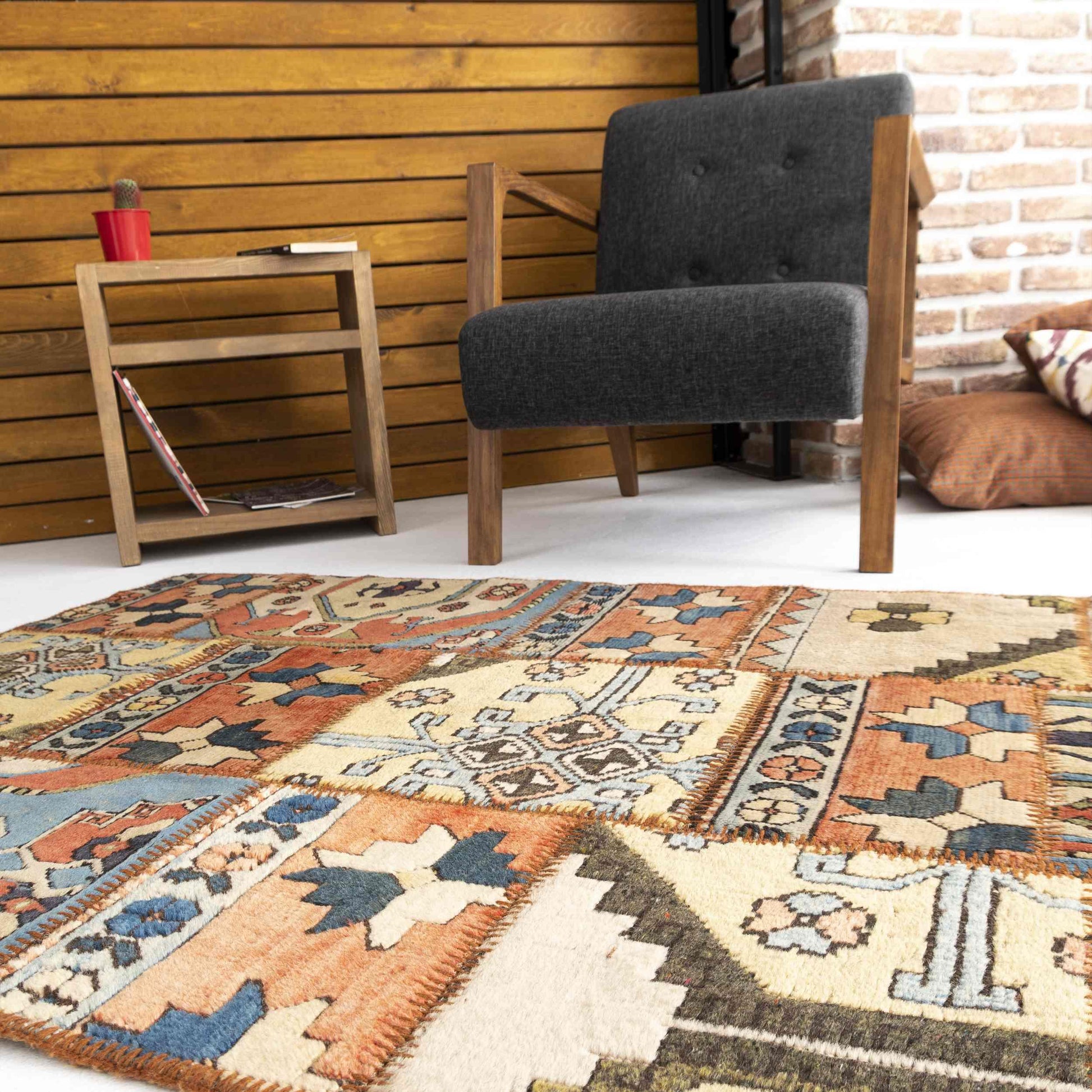 Transform your space with our Oriental Rug Patchwork, a stunning fusion of traditional craftsmanship and modern design. This 100% pure wool rug is meticulously handwoven by skilled nomadic weavers in Turkey, making each piece a unique treasure.
