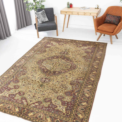 Oriental Rug Anatolian Handmade Wool On Cotton 202 X 296 Cm - 6' 8'' X 9' 9'' Sand C007 ER23
