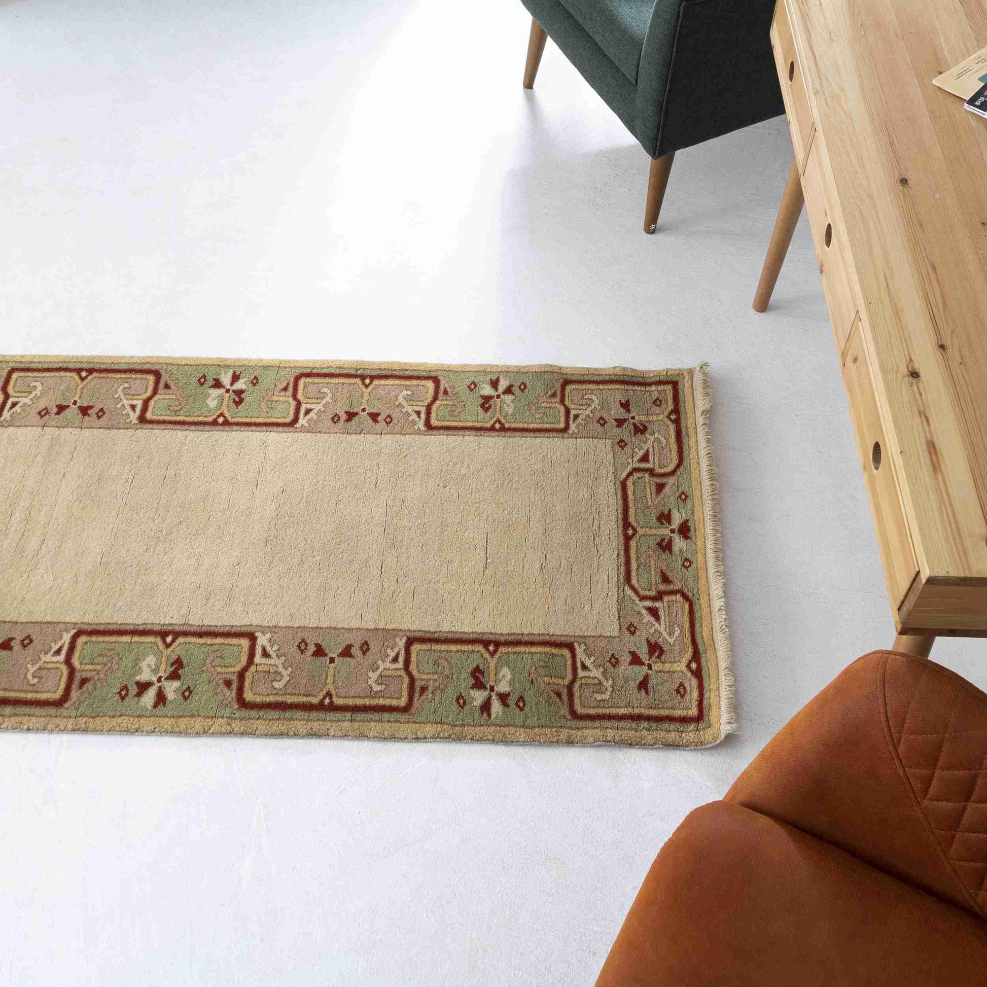 Oriental Turkish Runner Rug Handmade Wool On Wool Milas 85 X 256 Cm - 2' 10'' X 8' 5'' Sand C007