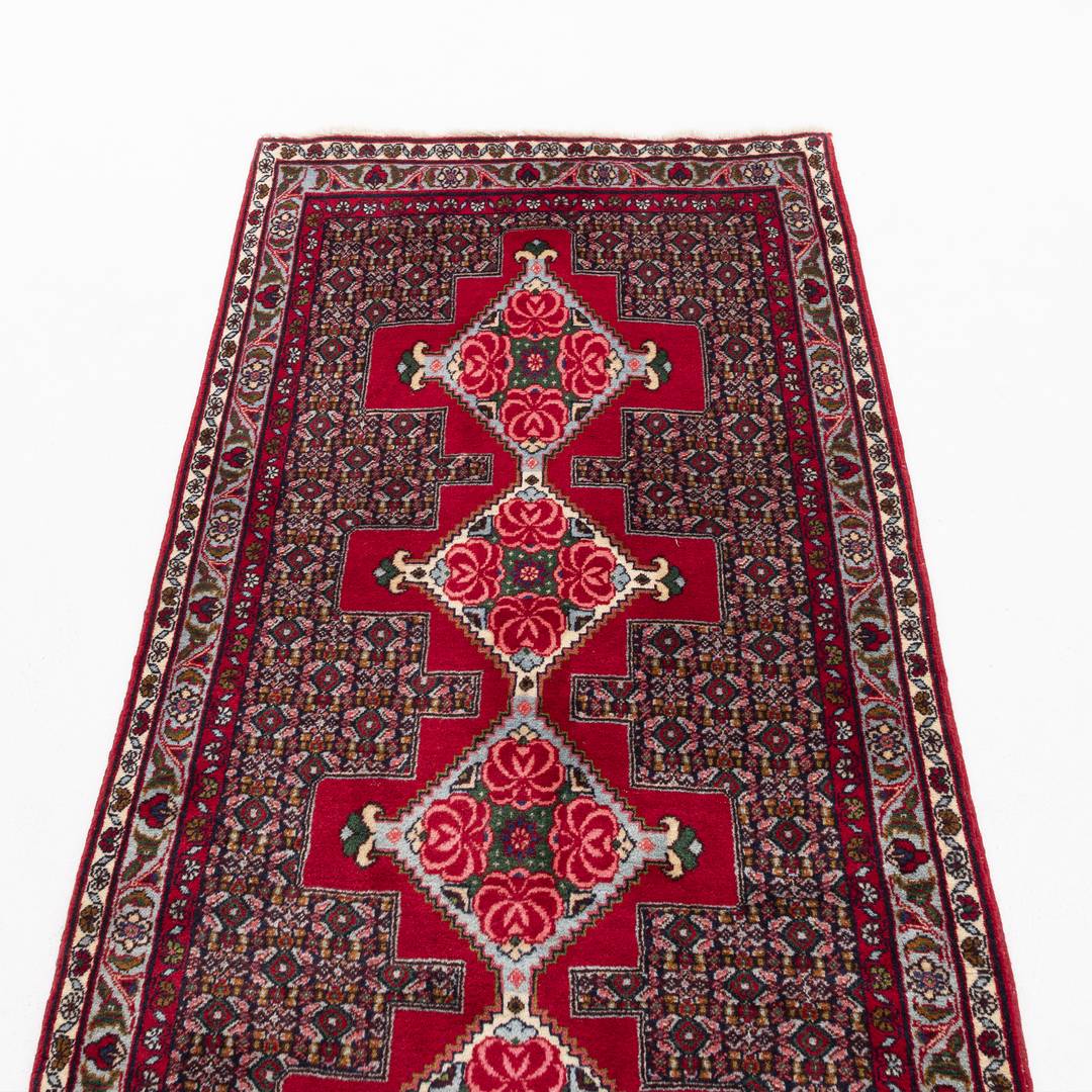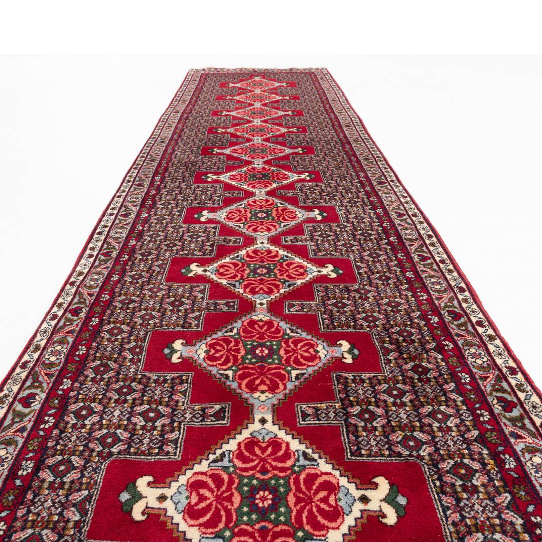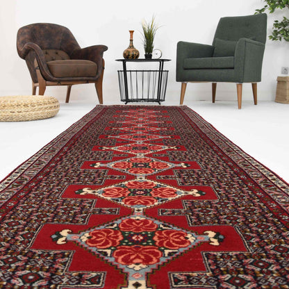 Oriental Turkish Runner Rug Handmade Wool On Cotton Sene 89 X 385 Cm - 3' X 12' 8'' Red C014