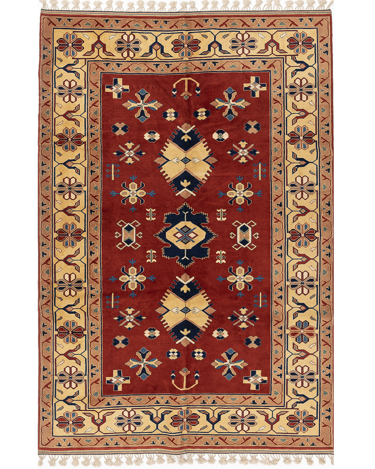Fringed with goat hair or colorful threads, the edges add an extra flair, complete with charming braided or cloudy ends! Bring home a piece of history and culture with this breathtaking rug!