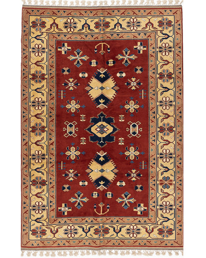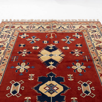 Crafted with care, the warp and filler are made from luxurious sheep wool or goat hair, adding warmth to your space. The rugs feature bold geometric motifs, bursting with bright colors against a deep brown backdrop.